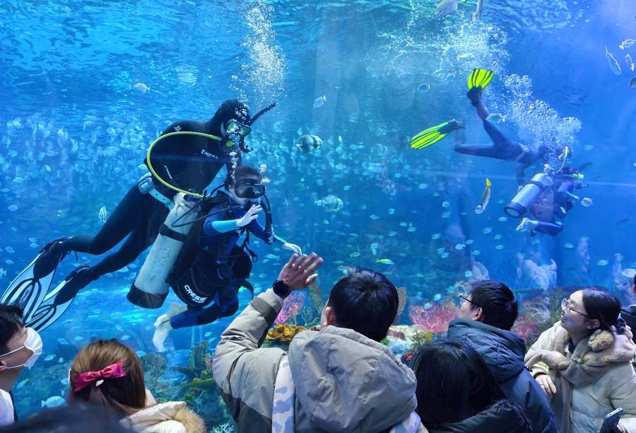 上海海昌公园迎节日大客流,全天有超百场演艺活动